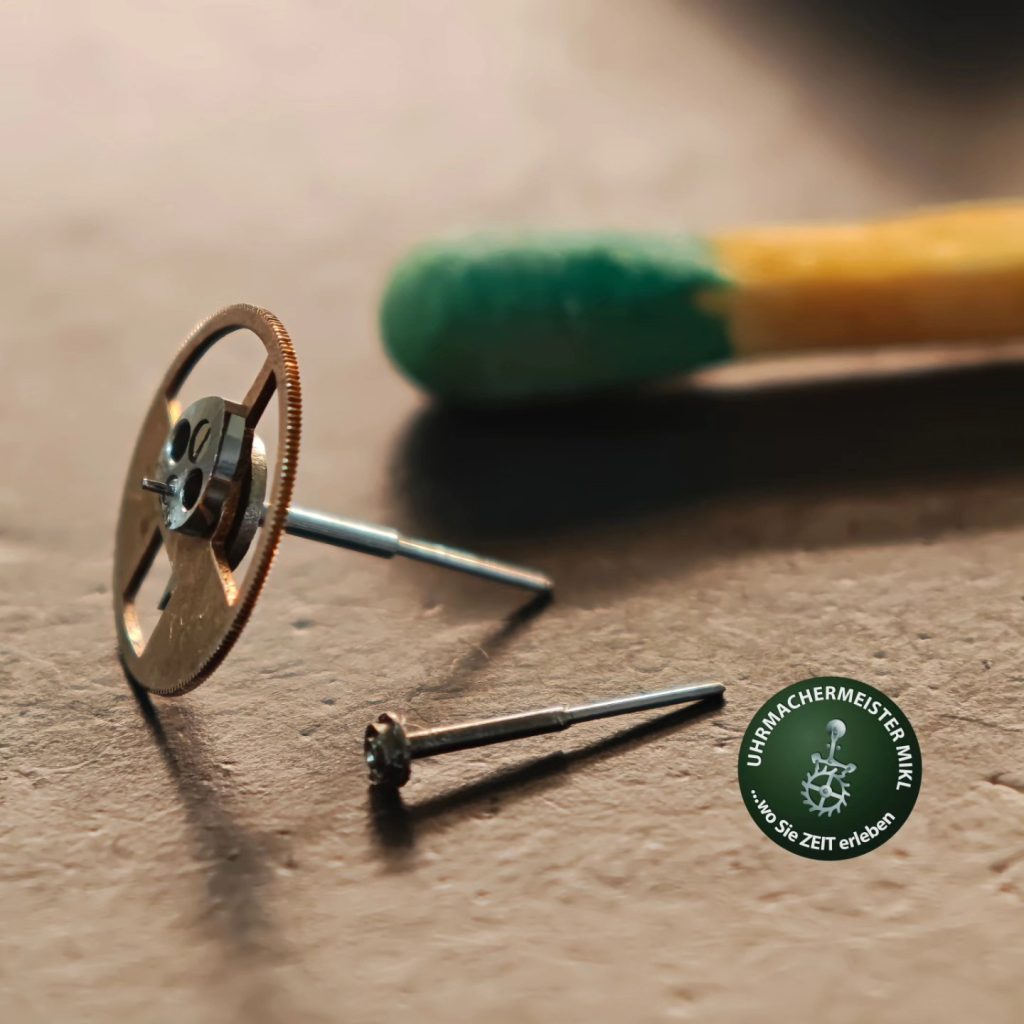 Hier seht ihr, wie ich eine neue Welle für das Chronozentrumsrad eines Hanhart 42 Chronographen angefertigt habe.